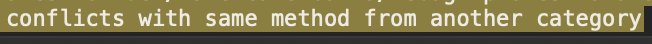 ld: warning: method '{methodName}' in category from {file build path}.o conflicts with same method from another category