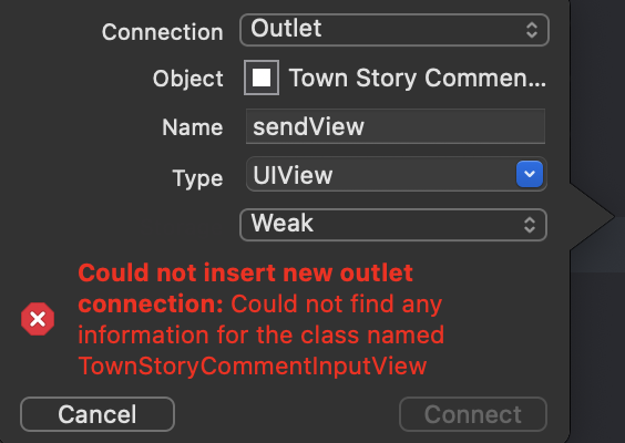 xib 파일 -> code로 IBOutlet을 연결시킬 때 발생하는 에러인데요.