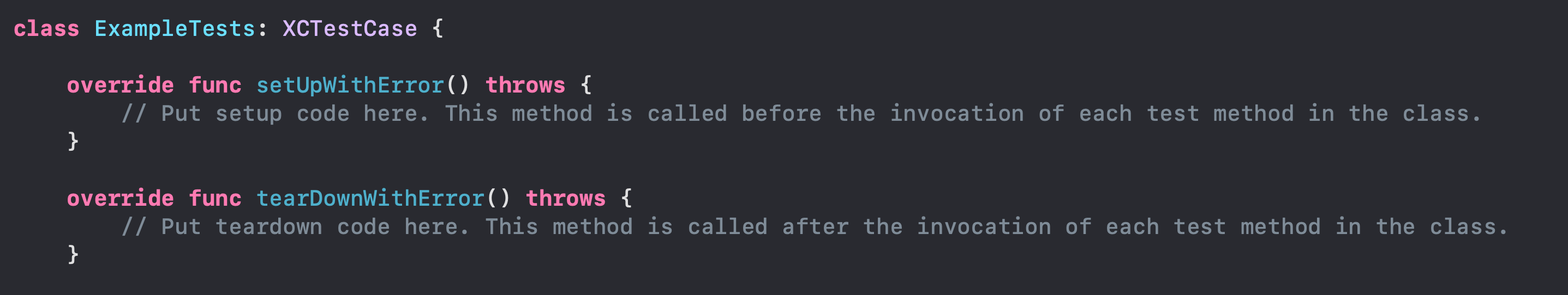 XCTestCase에도 픽스처를 위한 템플릿 메소드가 있습니다.